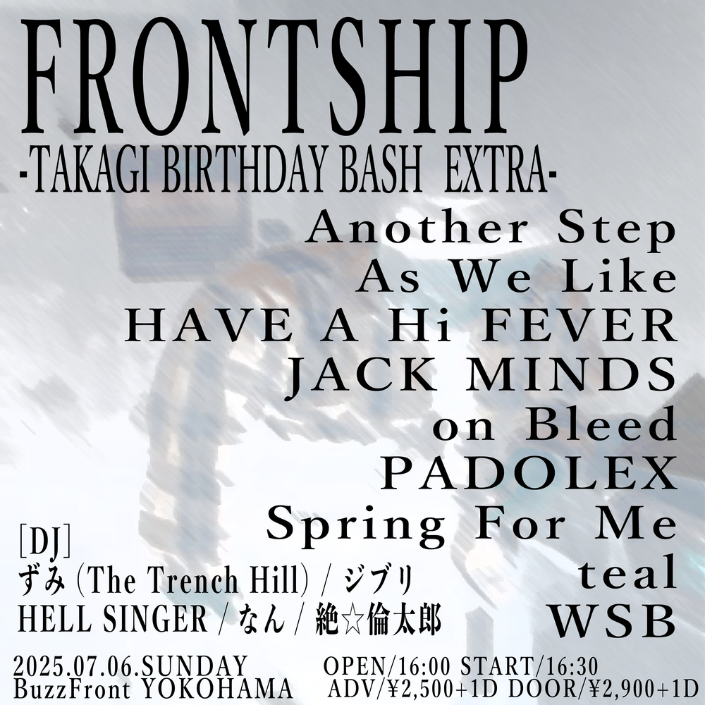 2025年7月6日、BuzzFrontで行われる『FRONTSHIP -TAKAGI BIRTHDAY BASH EXTRA』に出演決定しました!