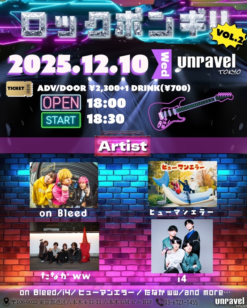 2025年12月10日、六本木unravel tokyoで行われる『ロックポンギ Vol.2』に出演決定しました!